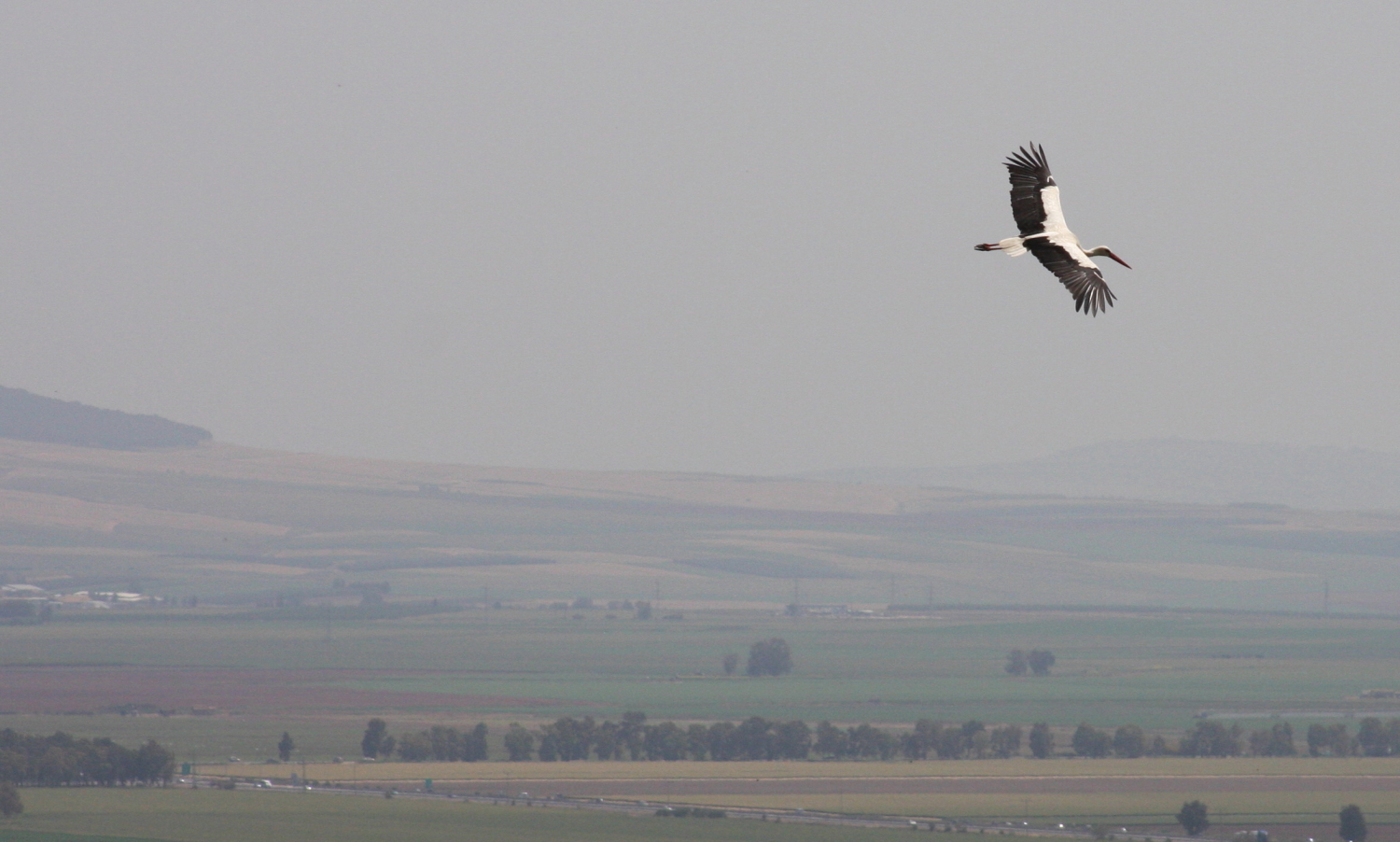 Dagens ensamma bild är en stork som flyger över Yizreel-dalen. Fotot är taget från Megiddo en vårdag för två år sedan.